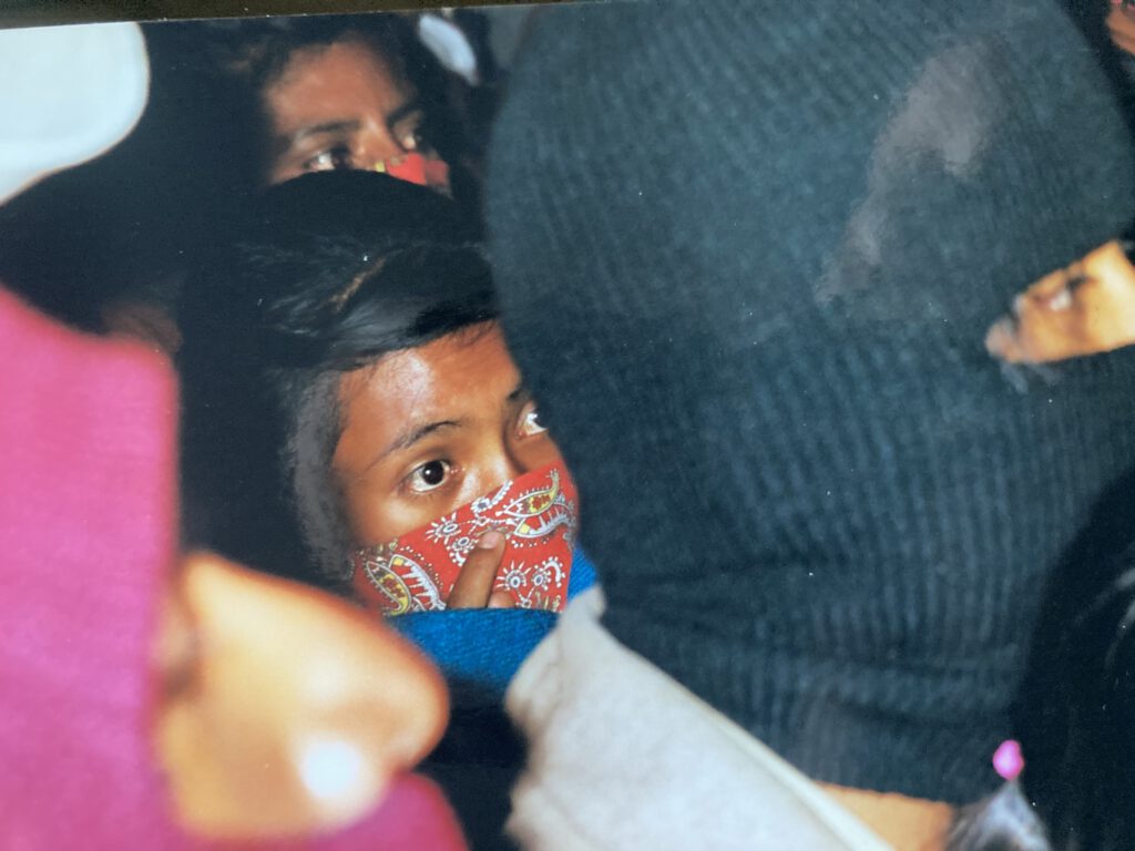 Unweit oberhalb von San Pedro Polho liegt das Dörfchen Acteal. Es ist heute dreigeteilt. Der unterste Dorfteil ist mit einem Seil abgesperrt. Die Zapatisten lassen keinen herein. Die Verantwortlichen, die eine Erlaubnis erteilen könnten, seien bei der Kaffeeernte, so die lapidare Begründung. Der mittlere Teil ist das Revier der „Abejas“. Am Eingang steht ein großes steinernes Monument, das an das Massaker vom Dezember 1997 erinnert. Damals ermordeten Paramilitärs 21 Frauen, neun Männer und 15 Kinder. Einige der Opfer wurden in der kleinen Kirche erschossen, wo sie aus Sicherheitsgründen geschlafen hatten. Die Schusslöcher in den Holzwänden und im Dach aus Eternit sind noch deutlich zu sehen. Im Revier der „Abejas“ leben 600 Menschen, 500 von ihnen wurden aus den umliegenden Dörfern vertrieben. Viele Flüchtlinge können ihr altes Haus von bloßem Auge erkennen. Es steht am Abhang auf der gegenüberliegenden Seite des Tales, vielleicht ein Kilometer entfernt. „Dort herrschen die ‘Mascaras rojas’ (rote Masken)“, sagt Juan Perez, der dem Leitungsgremium des Dorfteils angehört, „eine paramilitärische Truppe, die zwischen Zapatisten und ‘Abejas’ nicht unterscheidet.“ Mit ihnen gemeinsam haben sie nur, dass auch sie Tzotzil-Indios sind.